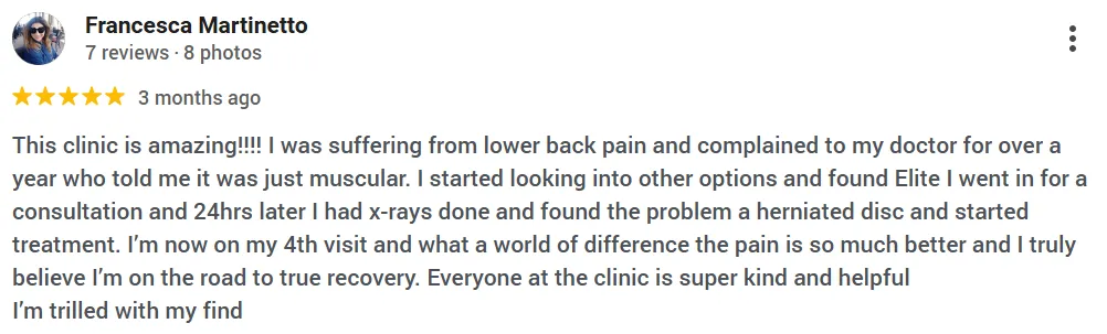 Elite Care Chiropractic is recognized for treating a wide range of conditions. We pride ourselves on treating various conditions involving the joints, musculoskeletal and nervous system. Our goal is to decrease pain, correct movement, increase strength and help return you to full function.